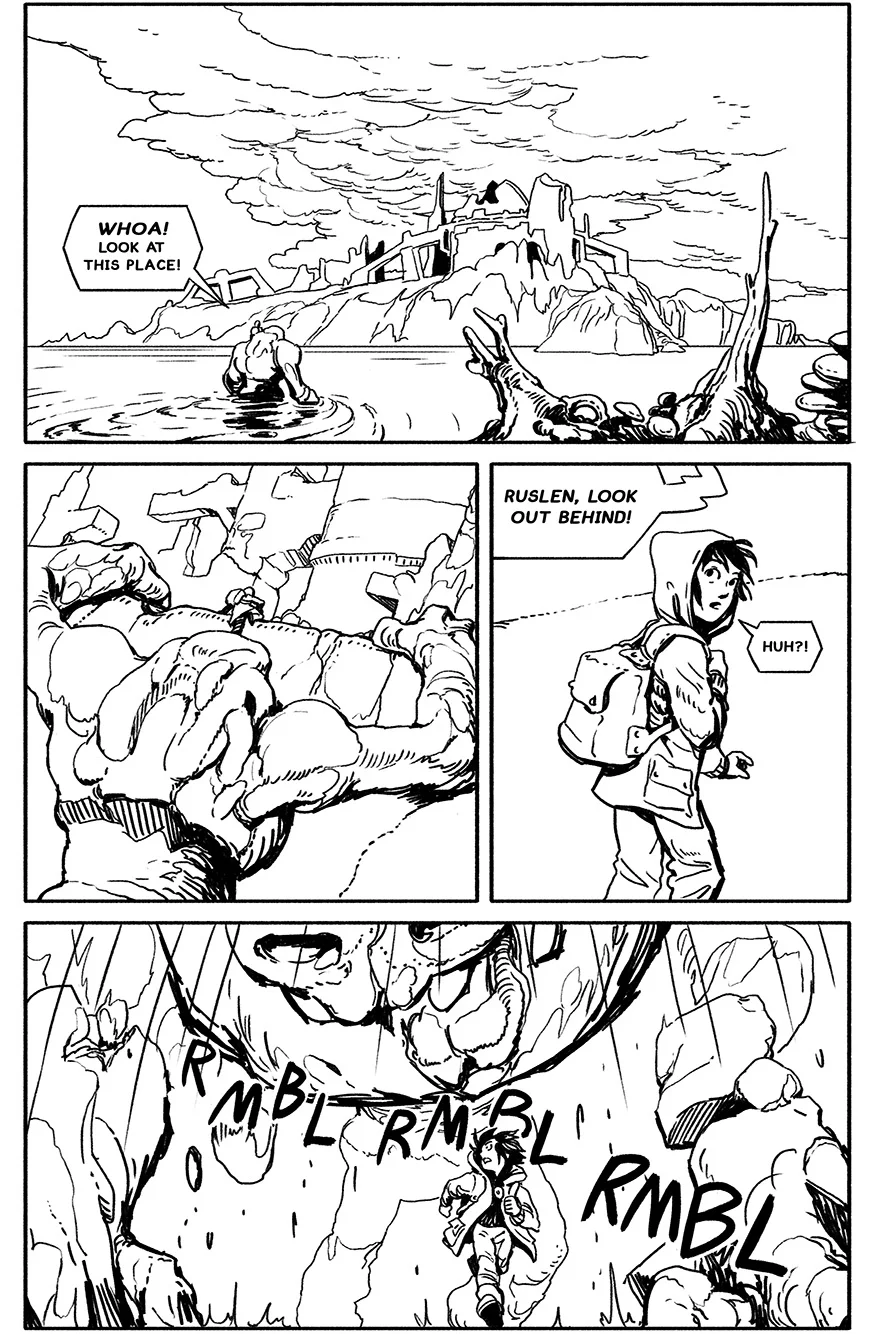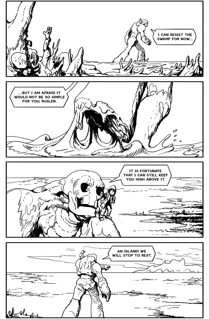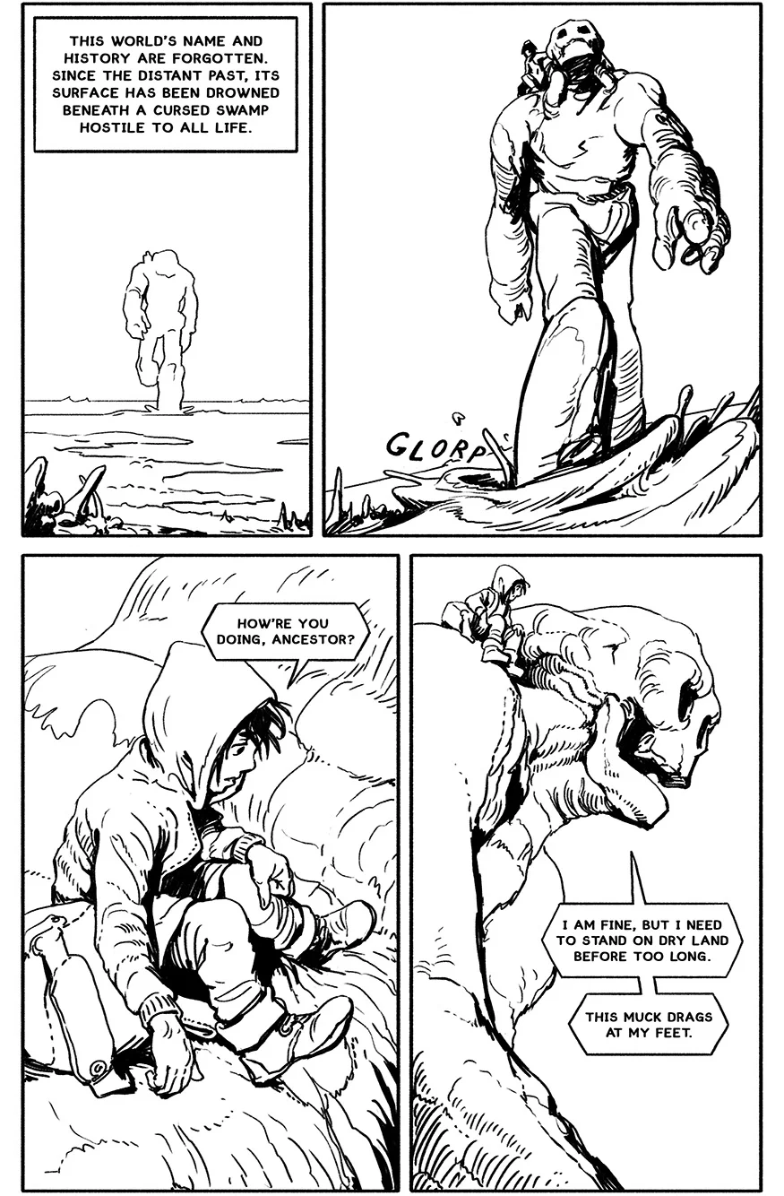 Gloom was my PNCA Illustration thesis project. A 16-page comic, it introduces orphaned boy Ruslen and ancient demigod Ancestor on their journey across the surface of their destroyed world. Taking thematic and stylistic cues from the work of Moebius, Miyazaki, and Otomo, Gloom was my first major comic project - a fun and intense crash course in the medium.