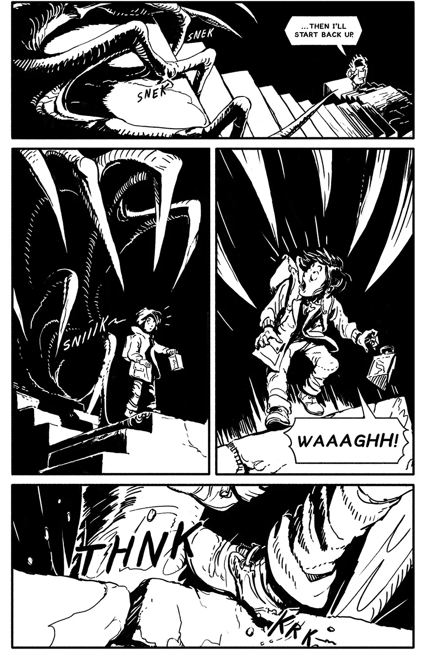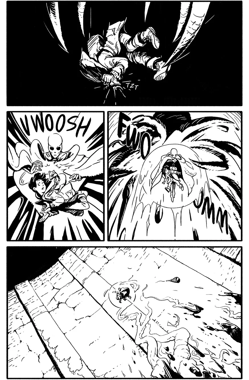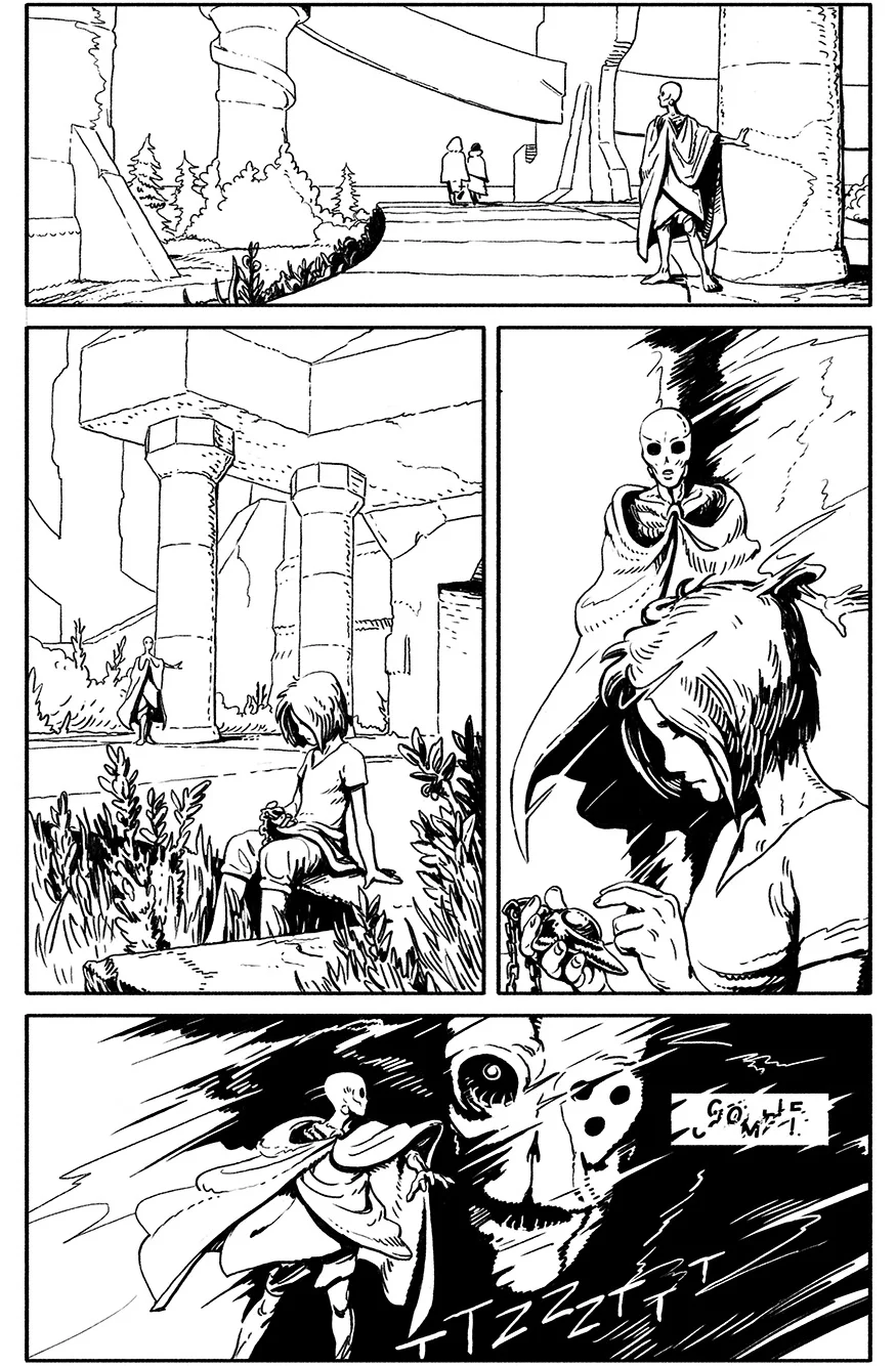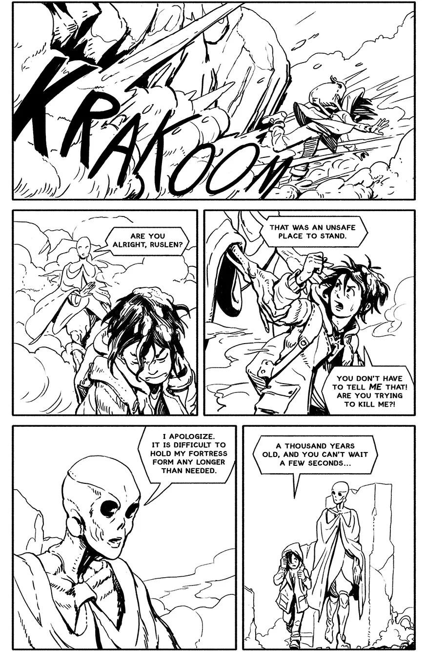 Gloom was my PNCA Illustration thesis project. A 16-page comic, it introduces orphaned boy Ruslen and ancient demigod Ancestor on their journey across the surface of their destroyed world. Taking thematic and stylistic cues from the work of Moebius, Miyazaki, and Otomo, Gloom was my first major comic project - a fun and intense crash course in the medium.